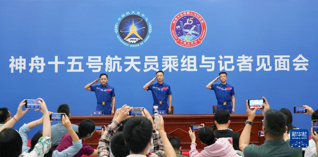 7月31日下午,中國航天員科研訓練中心在北京航天城舉行神舟十五號航天員乘組與記者見面會。費俊龍、鄧清明、張陸3名航天員從太空返回57天后首次正式公開亮相。