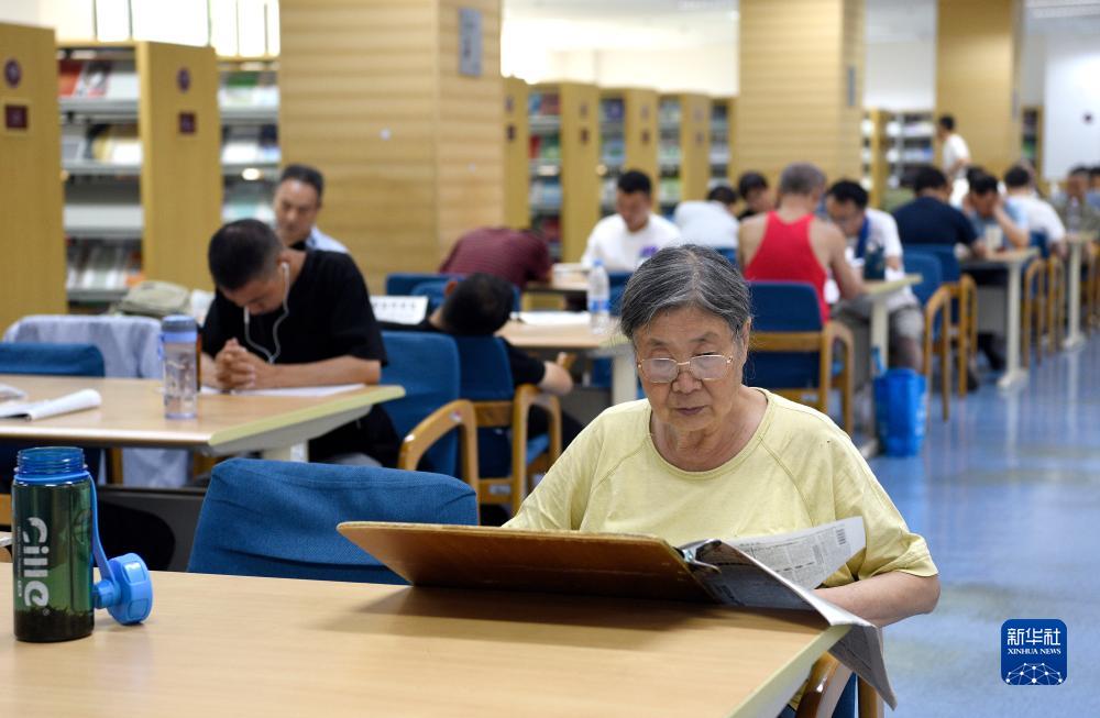 暑期,在陜西省西安市,不少人選擇來到圖書館,在舒適清涼的環境裏閱讀、自習。