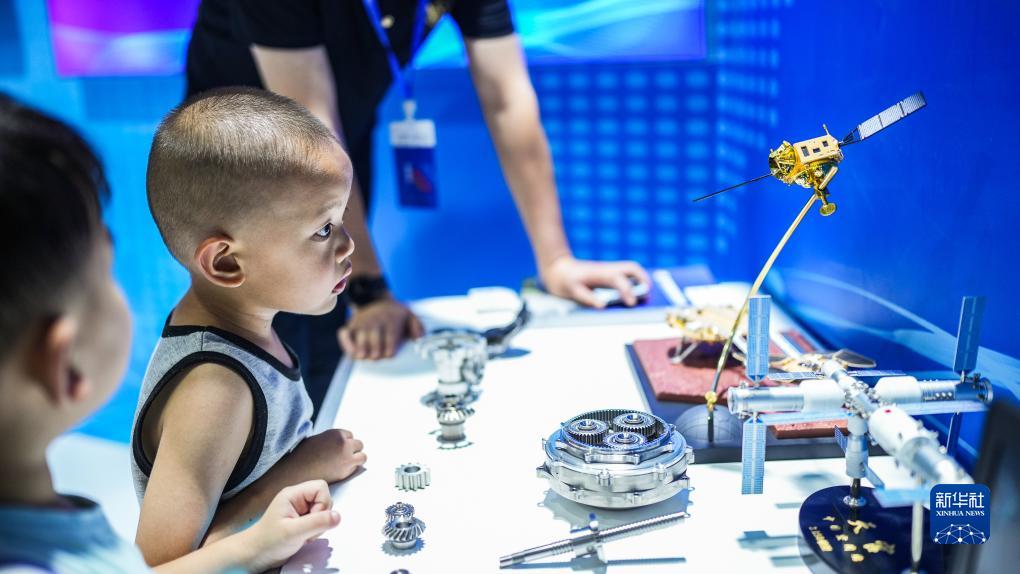 8月5日,小朋友在首屆貴州科技節現場參觀。