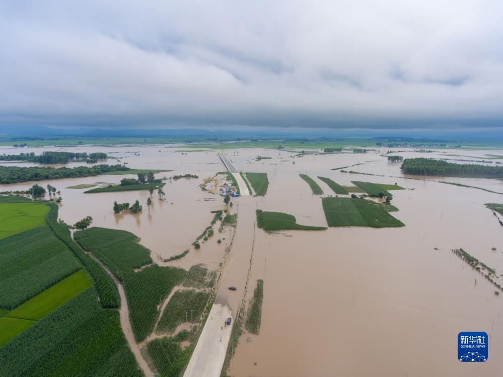 黑龍江省哈爾濱市延壽縣部分農田和道路被淹(8月5日攝,無人機照片)。