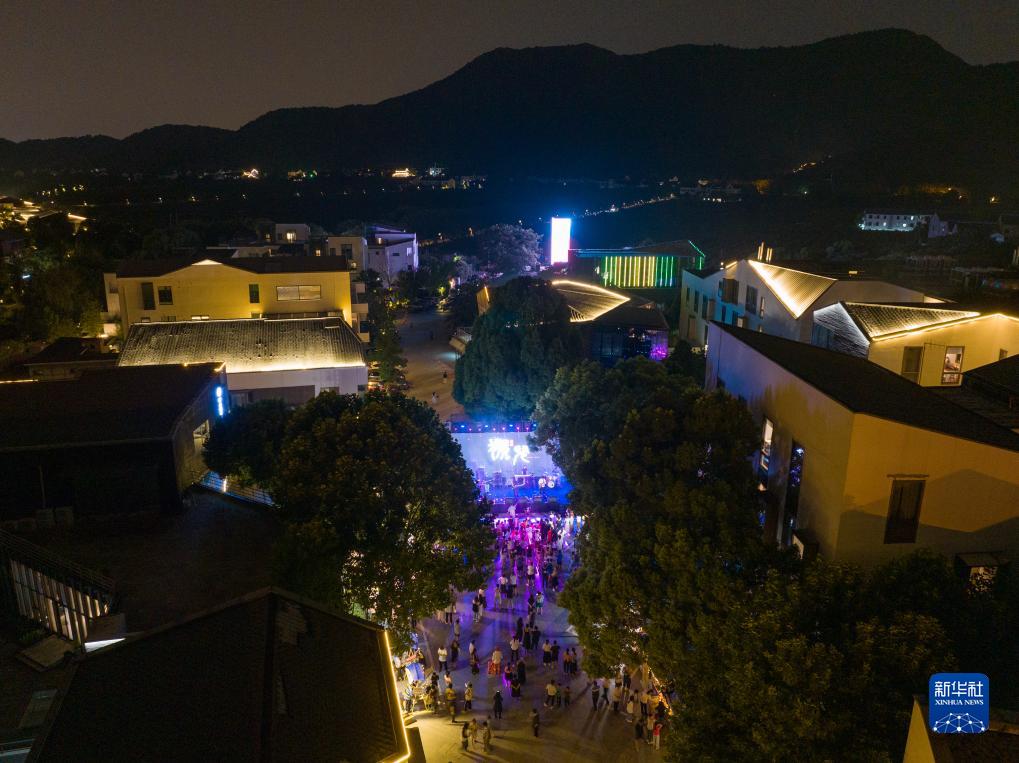 這是7月14日在蘇州市樹山村拍攝的“村潮澎湃”音樂節活動現場(無人機照片)。