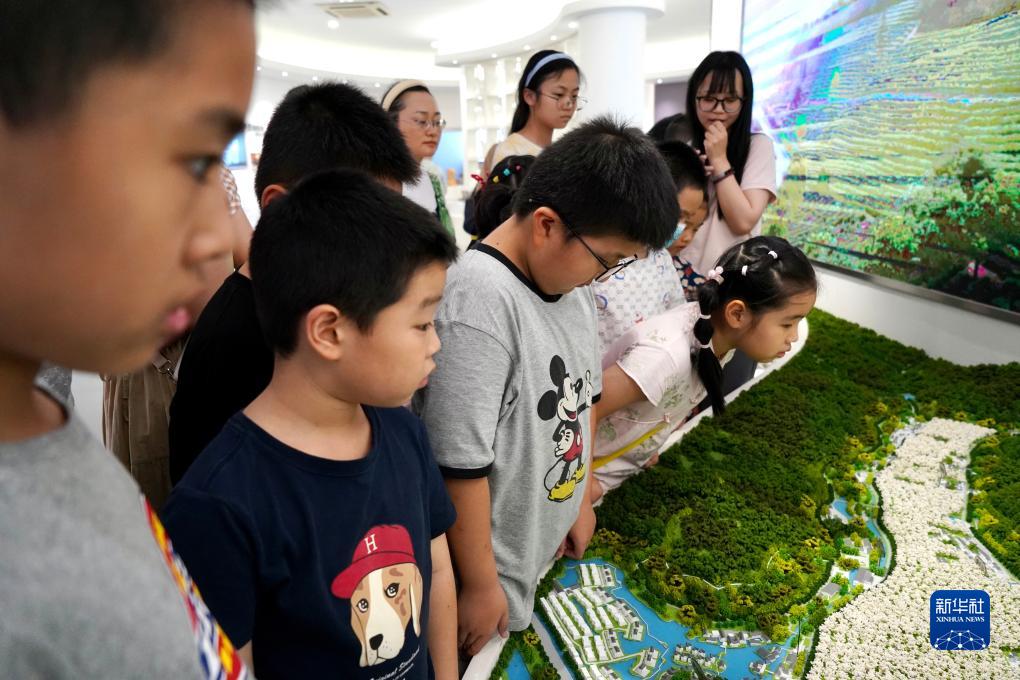 8月5日,小游客在蘇州市樹山村參觀。