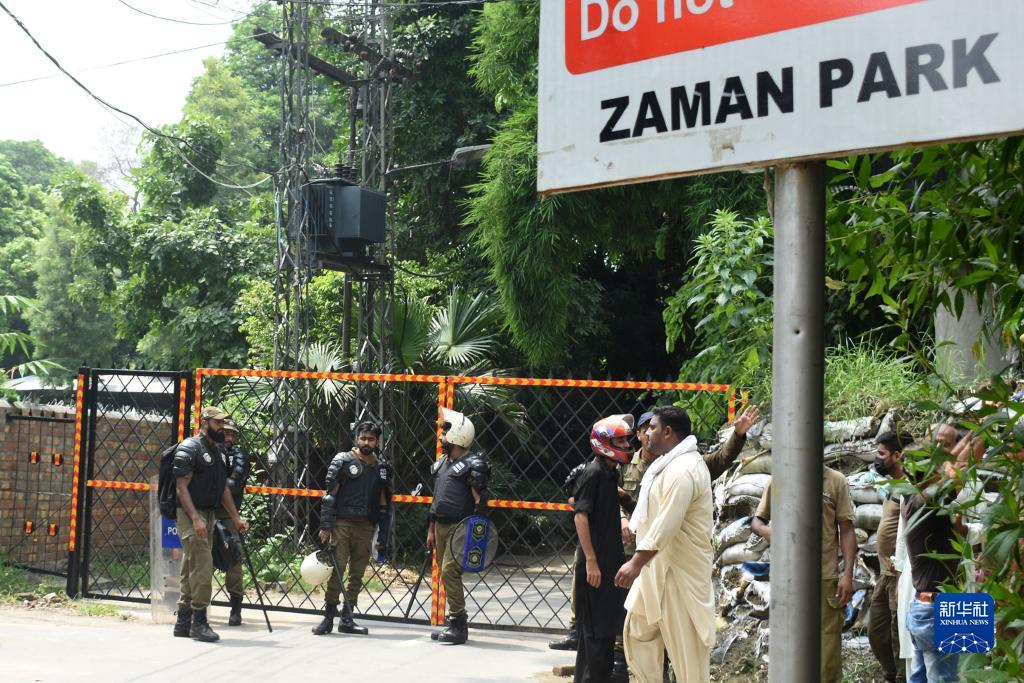 8月5日,警察在伊姆蘭·汗位於巴基斯坦東部旁遮普省首府拉合爾的私邸附近警戒。