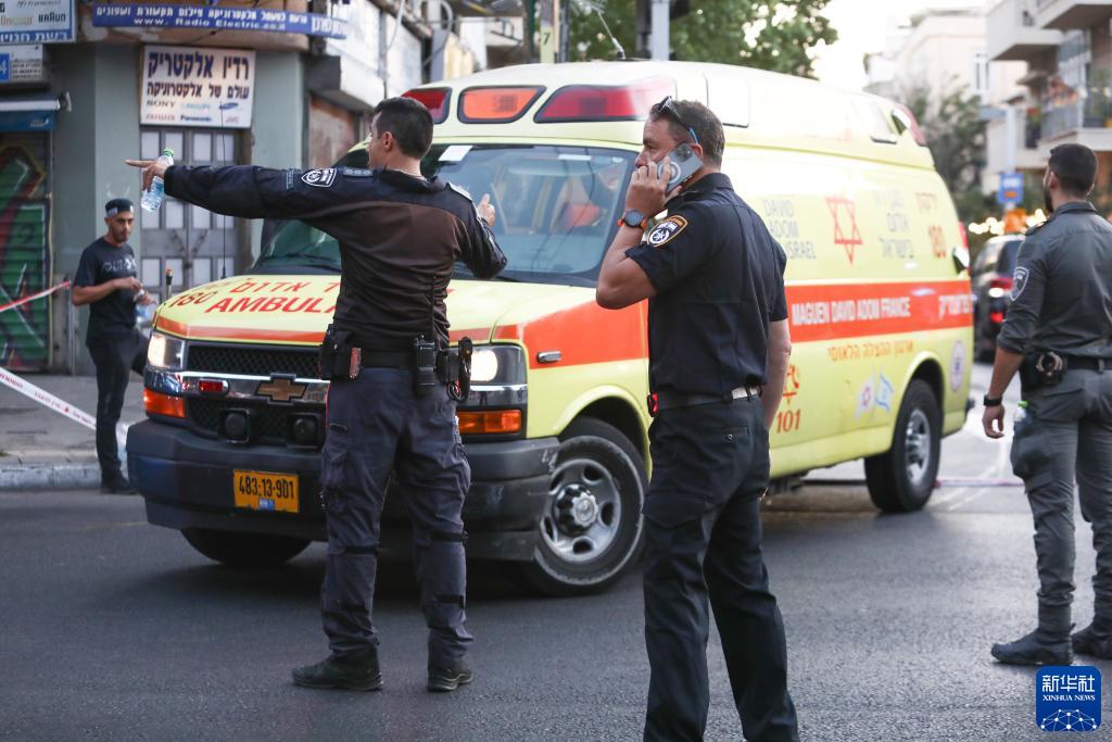 8月5日,在以色列特拉維夫,警察和急救人員在槍擊現場工作。