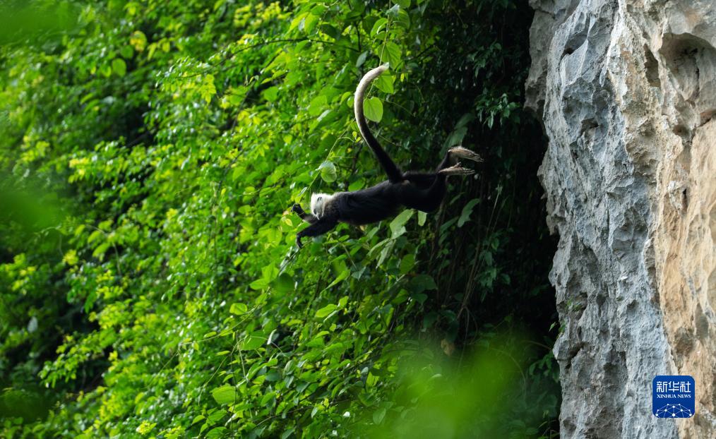 “國道之行 從雪山奔向大海”報道組來到位於崇左市江州區羅白鄉的白頭葉猴國家級自然保護區板利片區的核心區,進行了為期兩天的持續追蹤拍攝。