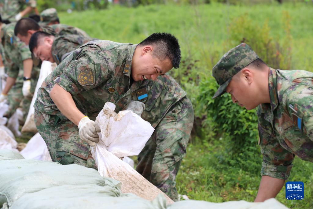 中部戰區1萬餘名官兵、民兵持續奮戰在防汛救災一線