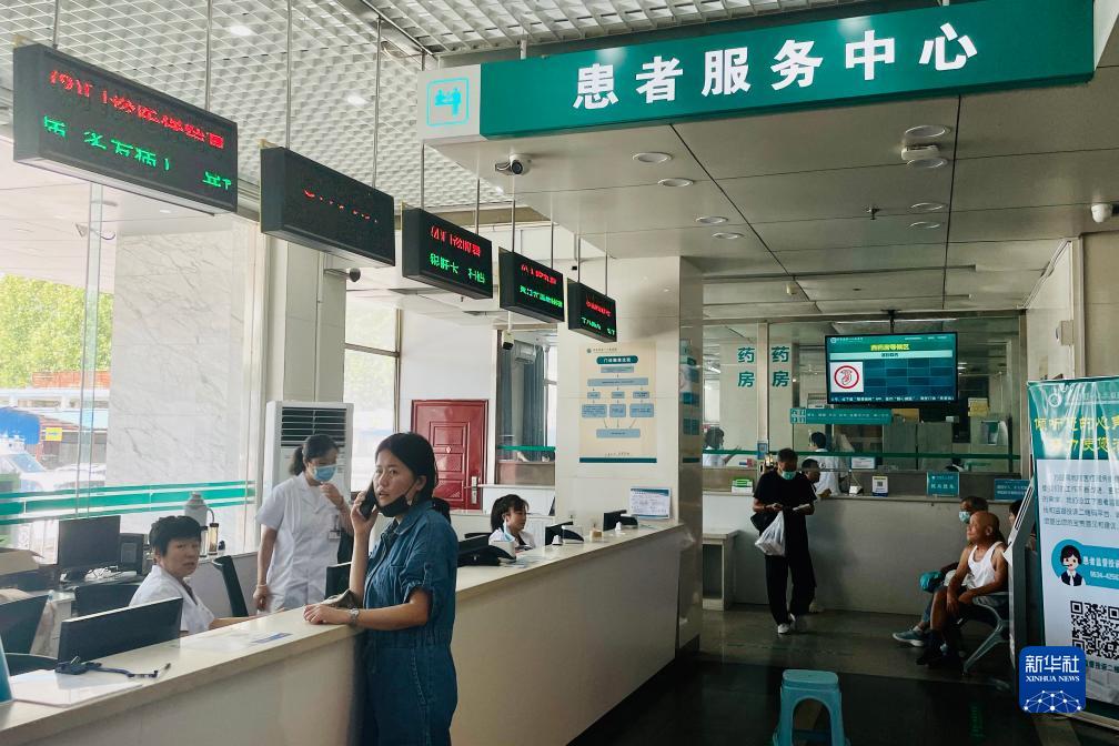 8月6日,在平原縣第一人民醫院患者服務中心內,患者向值班醫生諮詢情況。