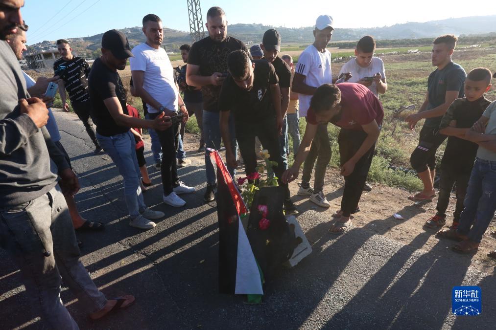 8月6日,人們在約旦河西岸城市傑寧的事發地點擺放獻花等物品。
