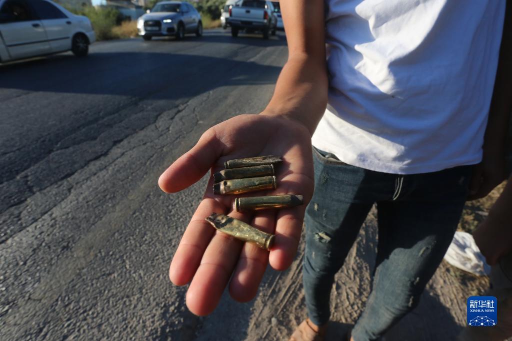 8月6日,一名男子在約旦河西岸城市傑寧的事發地點展示彈殼。