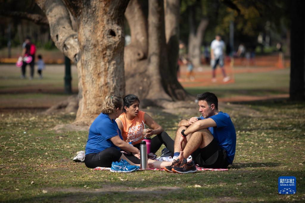 8月6日,人們在阿根廷首都布宜諾斯艾利斯的一處公園休閒。