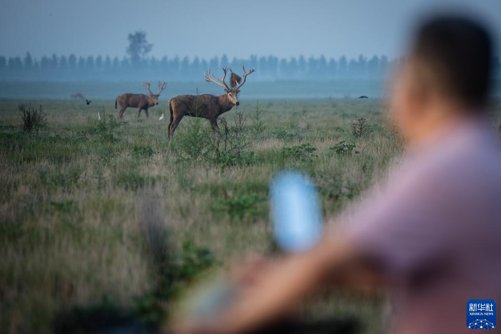 時至盛夏,位於湖北天鵝洲長江故道邊的湖北石首麋鹿國家級自然保護區迎來了一場夏日的狂歡。