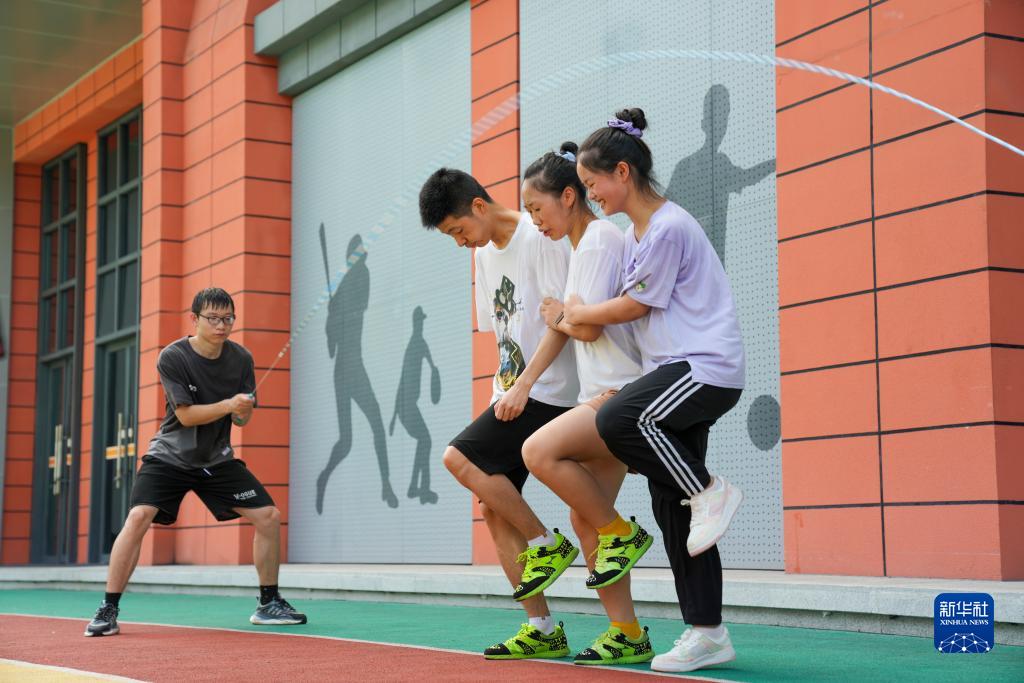 8月4日,重慶市特殊教育中心跳繩隊隊員在進行多人團體跳繩訓練。