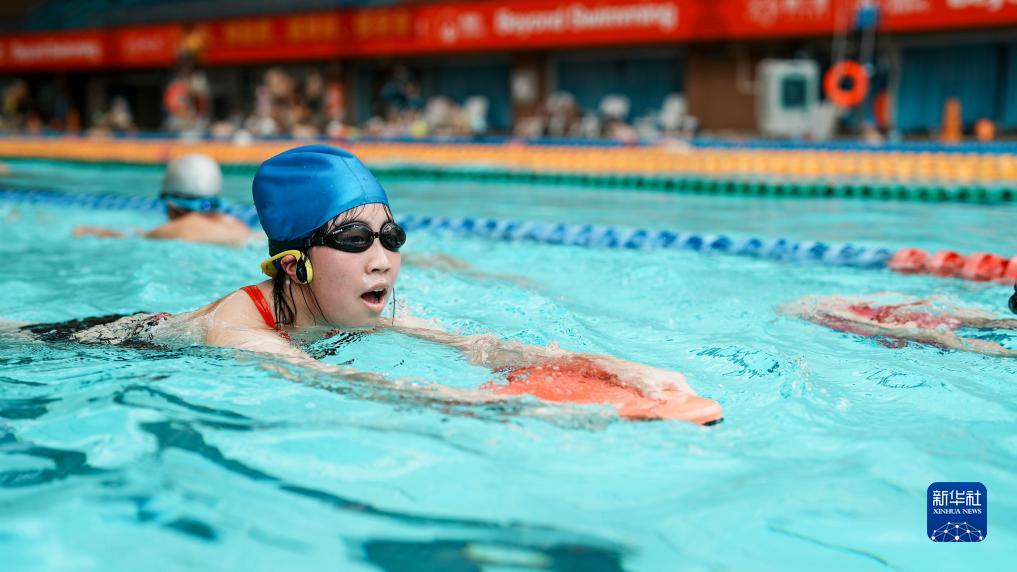 8月5日,重慶市特殊教育中心游泳隊隊員在重慶江南體育中心游泳館進行水上練習。