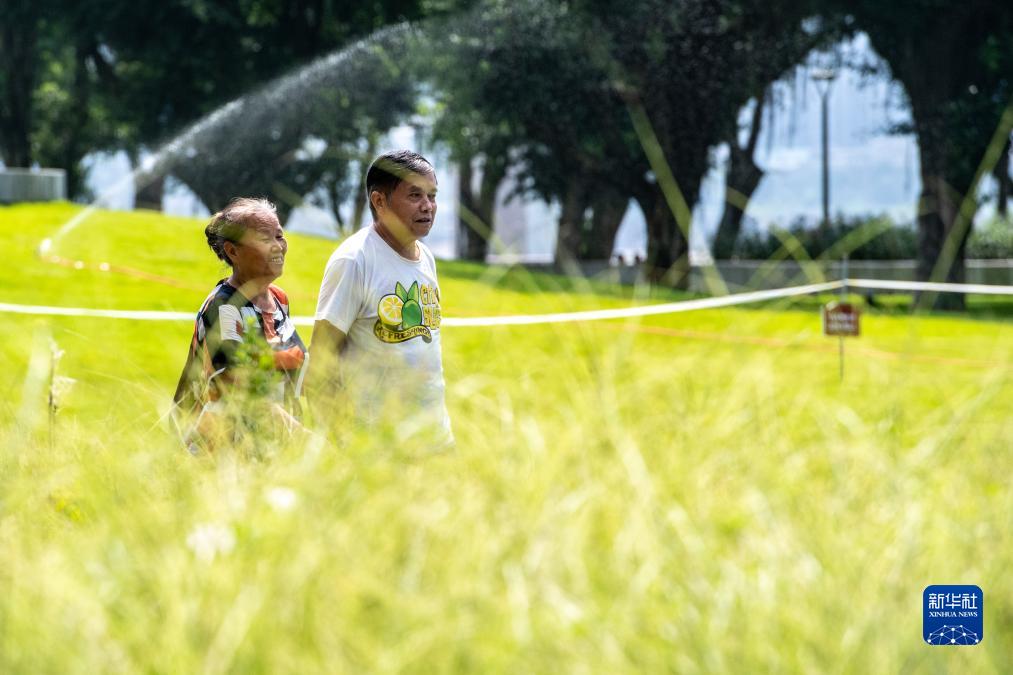 8月6日,在位於重慶長江岸邊的珊瑚公園,市民在散步。