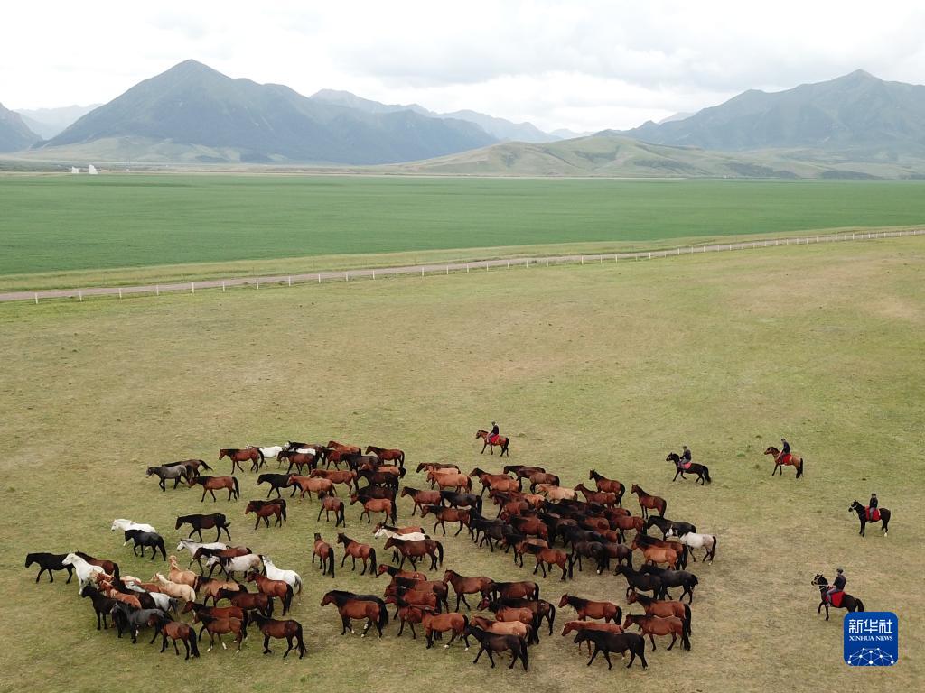 夏日,在位於河西走廊中部、祁連山冷龍嶺北麓大馬營草原的山丹馬場,成群的駿馬歡騰覓食,十分壯觀。自漢代起,山丹馬場就開始養馬。如今,“山丹馬”保種和速力型賽馬培育是山丹馬場養殖業發展的重要方向。