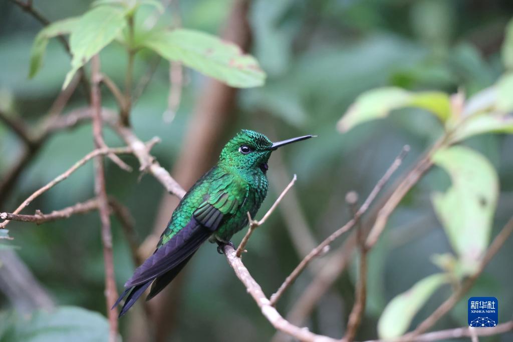 7月24日,一隻綠頂輝蜂鳥停在哥斯達黎加蒙特韋德雲霧森林生物保護區的樹枝上。