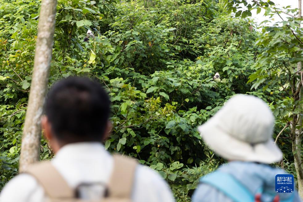 8月5日,李文欽(右)和梁志章在觀察白頭葉猴。
