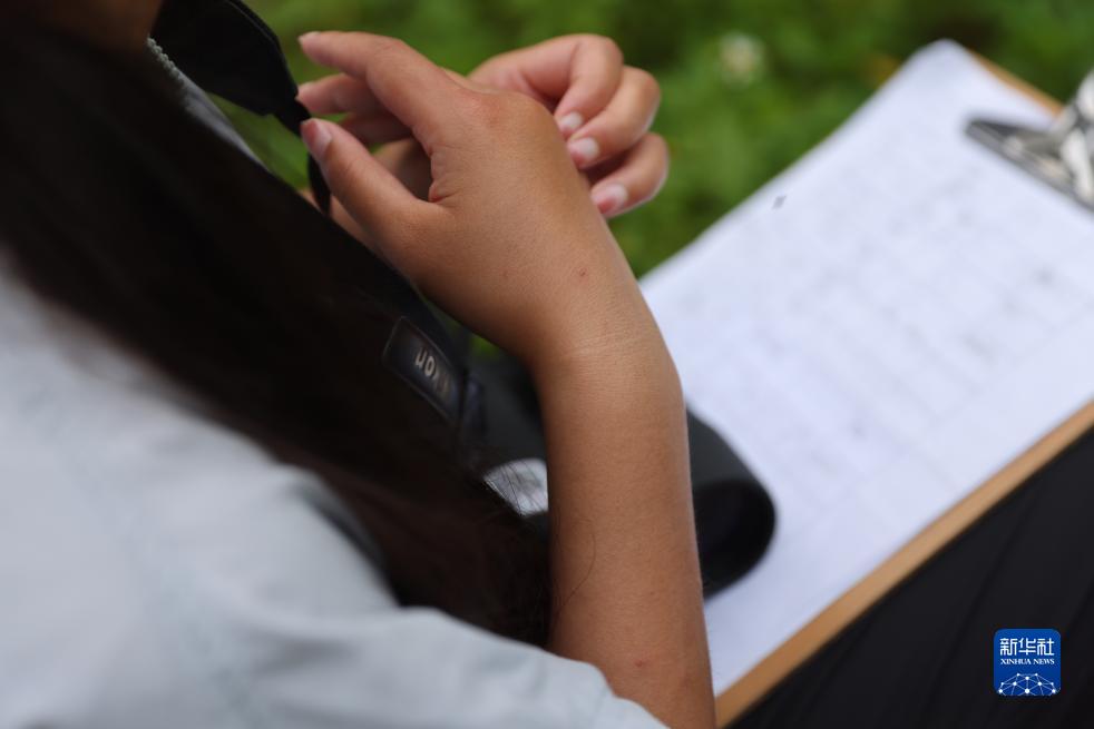 8月5日,劉彥辰一邊觀察白頭葉猴,一邊抓撓手上被蟲咬的小包。