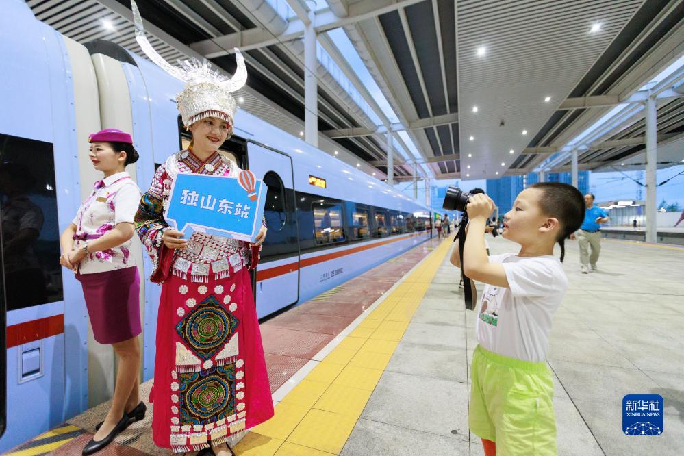 當日,隨着貴陽北至荔波的D6171次列車駛出貴陽北站,貴陽至南寧高速鐵路貴陽至荔波段正式開通運營。據了解,貴南高鐵是我國“八縱八橫”鐵路網包頭到海南鐵路通道的重要組成部分,線路全長482公里,設計時速350公里,貴陽至荔波最快57分鐘可達。