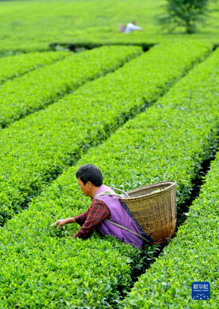 8月8日,湖北省恩施土家族苗族自治州宣恩縣椒園鎮石馬村的茶農在採摘立秋茶。