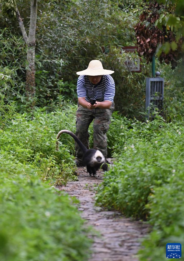 8月5日,在崇左市江州區羅白鄉的白頭葉猴國家級自然保護區,一隻白頭葉猴從記者身邊跑過。