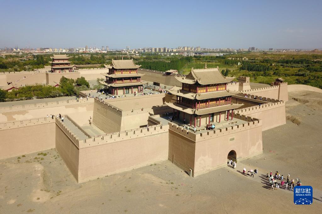 這是8月7日拍攝的嘉峪關關城(無人機照片)。