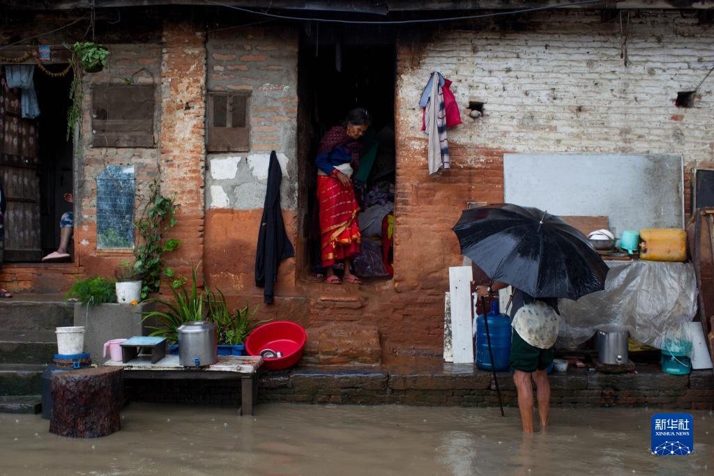 受降雨影響,尼泊爾加德滿都多處區域遭遇洪澇災害。