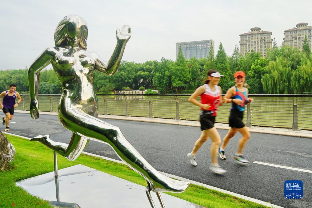8月8日,市民在浙江省嘉興市南湖區凌公塘文化主題公園晨跑。