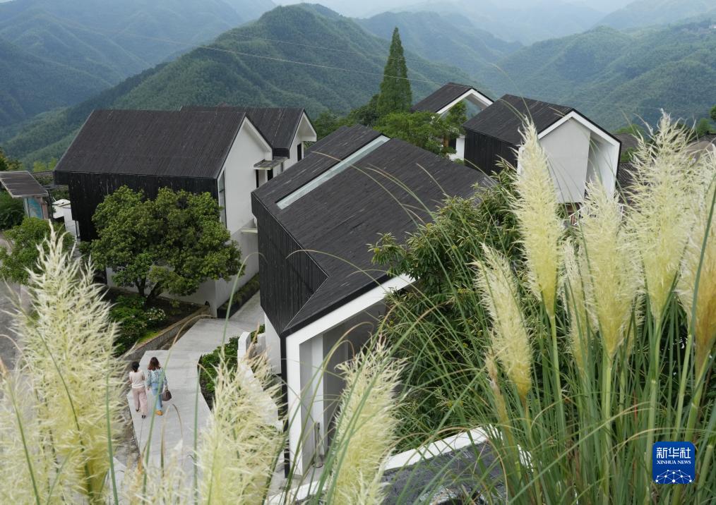 8月8日,游客行走在余姚市鹿亭鄉一家由閒置農房改建的民宿。