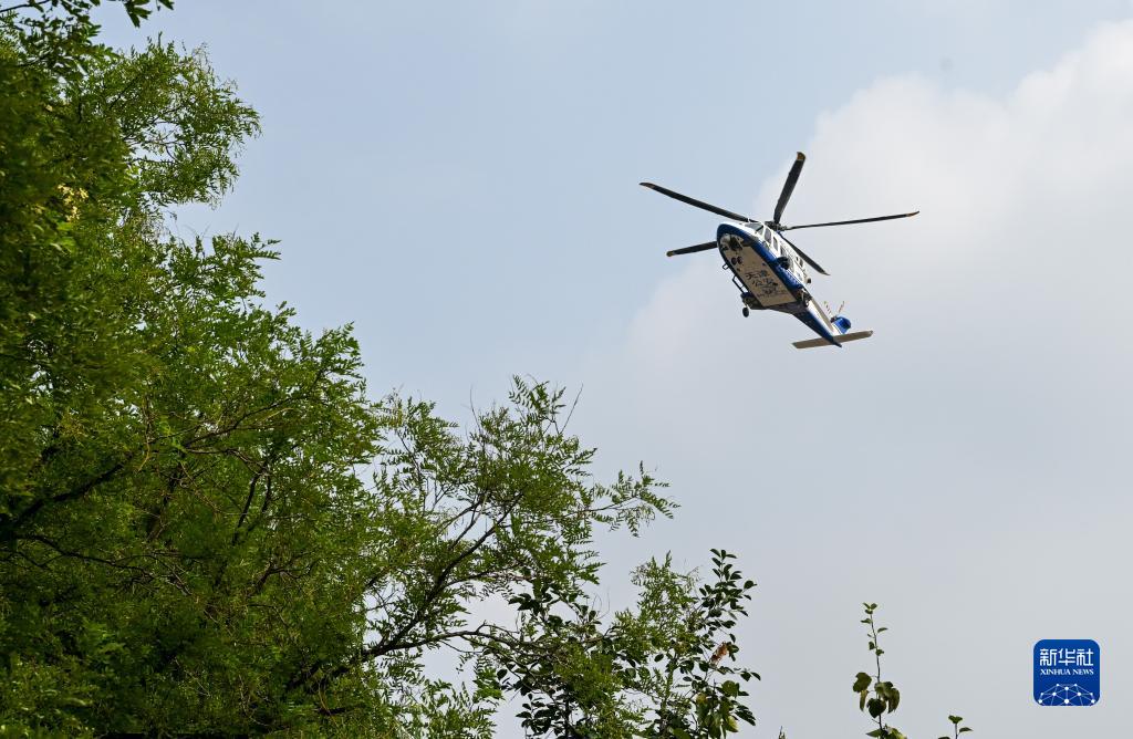 8月8日,天津市公安局警務航空總隊直升機在天津市靜海區&頭鎮上空執行任務。