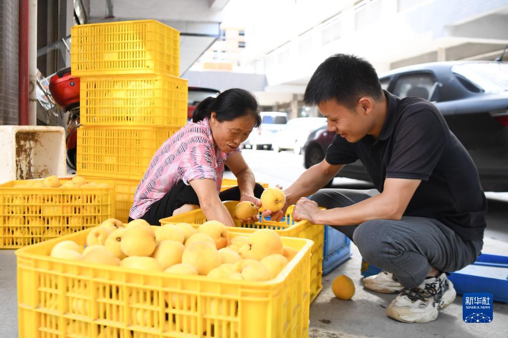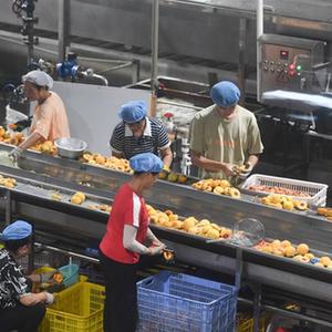 眼下正值湖南省株洲市炎陵縣黃桃成熟季節,當地黃桃産業鏈從業人員忙着採摘、加工、運輸黃桃及黃桃産品。黃桃是炎陵縣的特色産業,目前全縣種植黃桃達9.6萬畝,預計今年産量8.5萬噸。