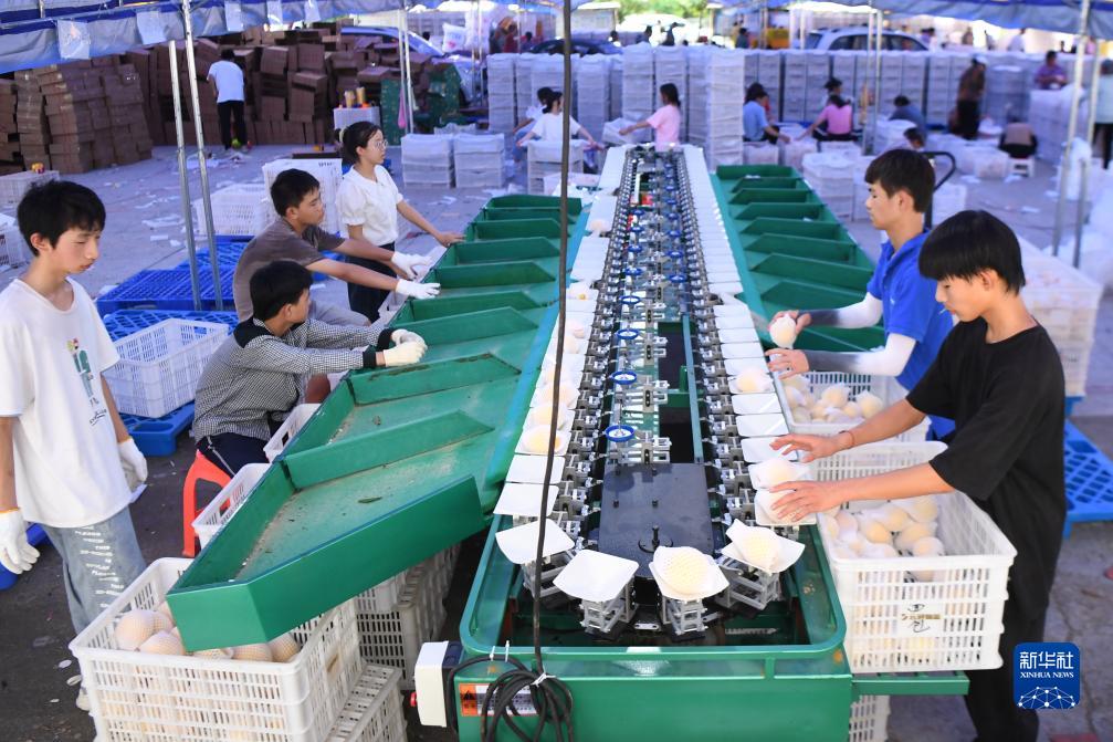 眼下正值湖南省株洲市炎陵縣黃桃成熟季節,當地黃桃産業鏈從業人員忙着採摘、加工、運輸黃桃及黃桃産品。黃桃是炎陵縣的特色産業,目前全縣種植黃桃達9.6萬畝,預計今年産量8.5萬噸。