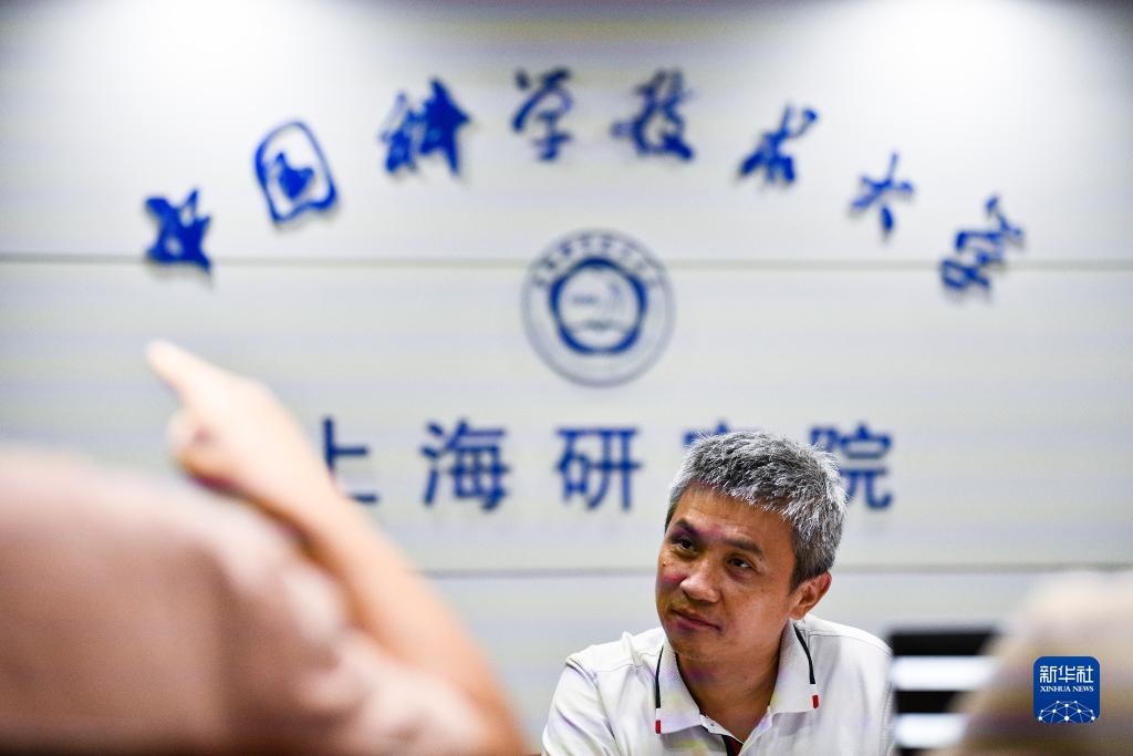7月22日,在中國科學技術大學上海研究院,彭承志在組會上聽取匯報。