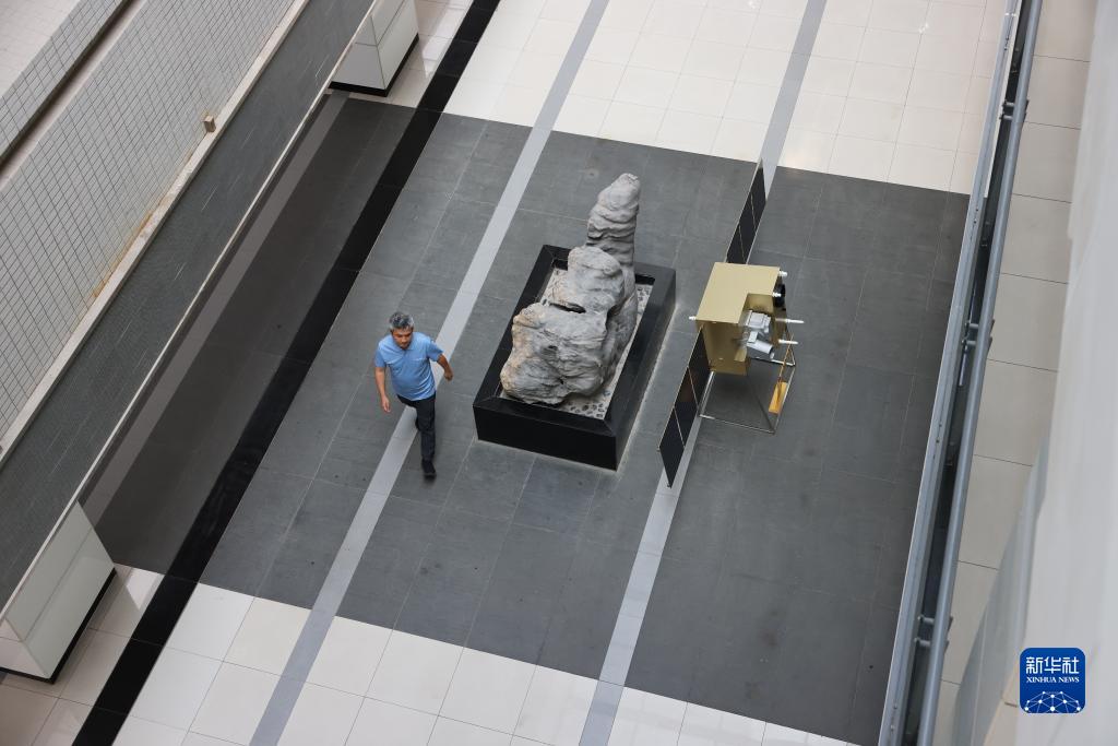 7月21日,在位於安徽合肥的中國科學技術大學,彭承志從大廳裏展示的“墨子號”模型旁走過。