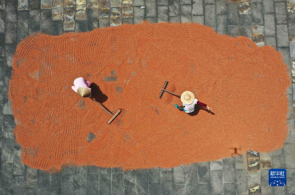 近日,貴州省赤水市種植的高粱喜獲豐收,村民們搶抓晴好天氣忙着采收、晾曬高粱。近年來,赤水市積極調整農業産業結構,駐村黨員幹部引導農民種植釀酒高粱,採取“黨支部+合作社+農戶”模式,統一提供種子、有機肥和種植技術,實行訂單保底價格收購,促進農業增效、農民增收,助力鄉村振興。