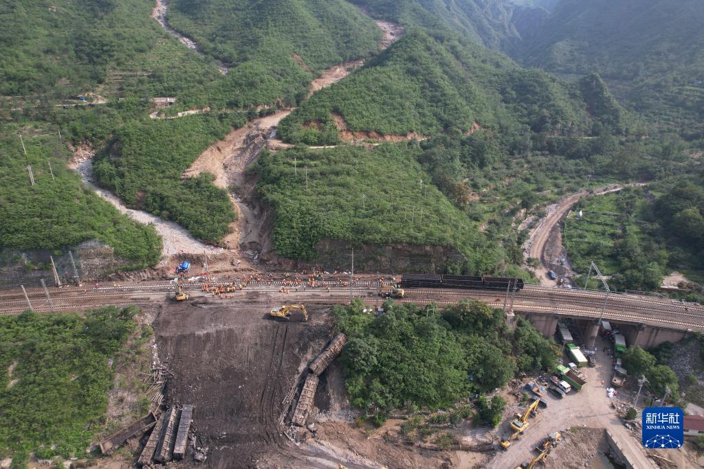 這是8月8日拍攝的豐沙線搶修現場(無人機照片)。