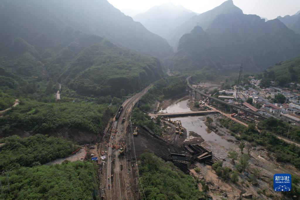 這是8月8日拍攝的豐沙線搶修現場(無人機照片)。