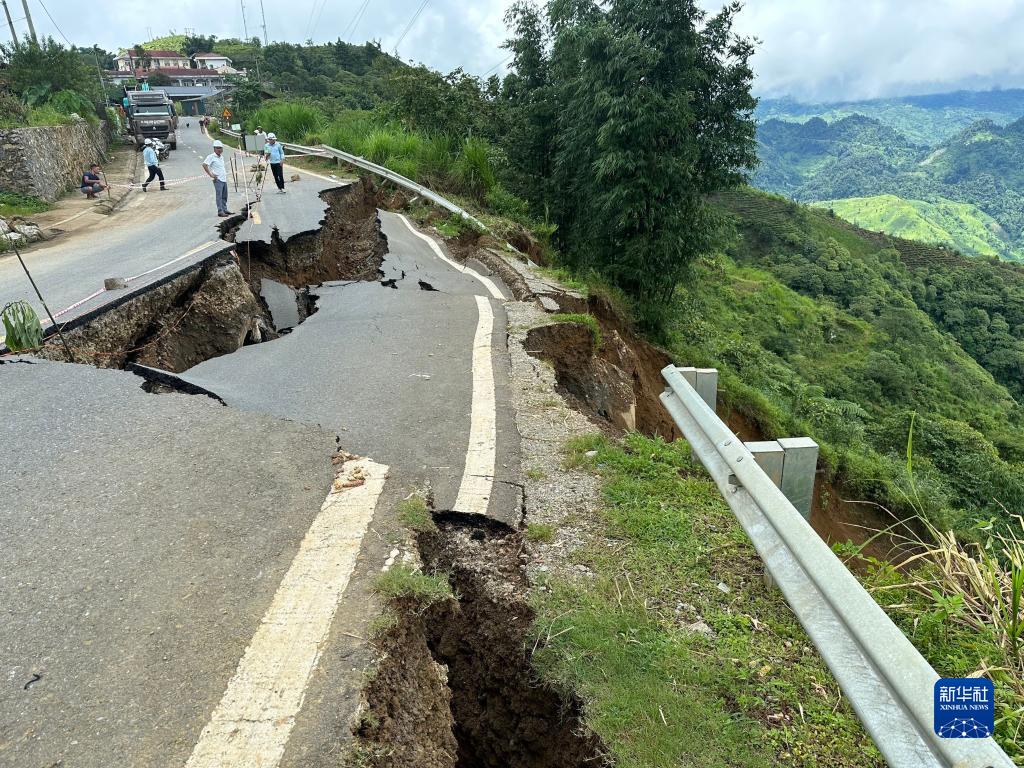 8月5日,在越南萊州省,道路因山體滑坡受損。