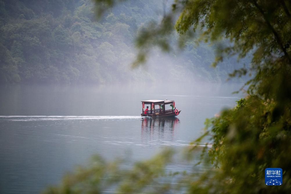 8月9日,遊船行駛在資興市東江湖風景區小東江上。