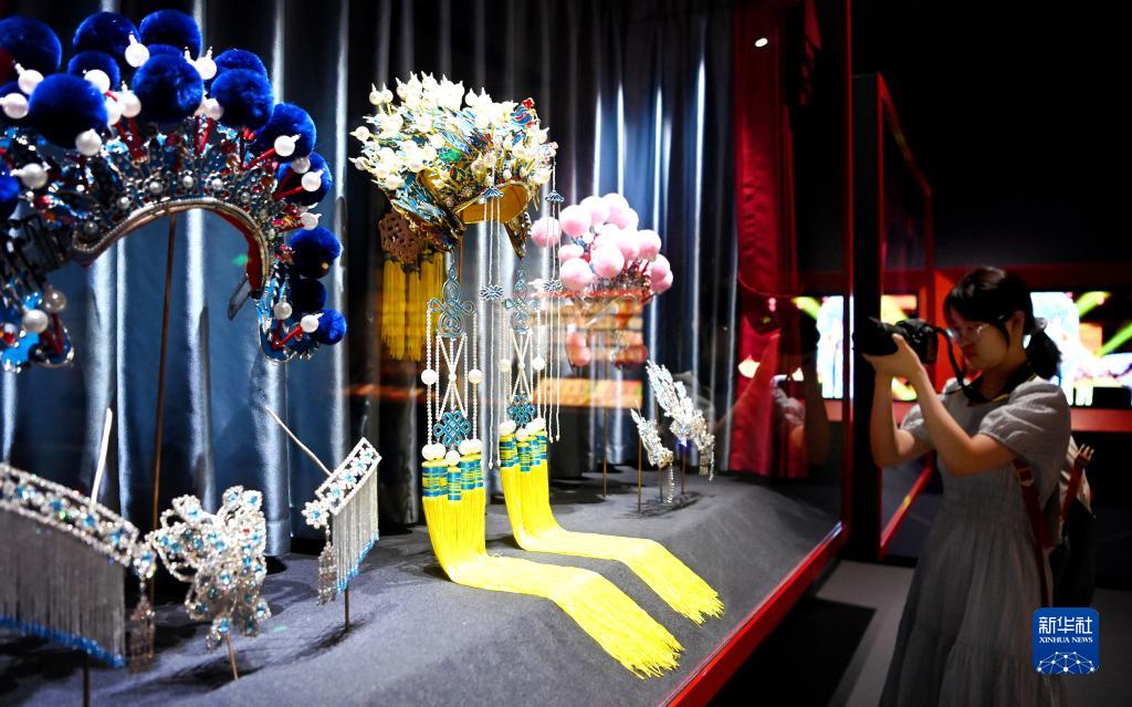 參觀者在中國秦腔藝術博物館裏觀展(8月8日攝)。