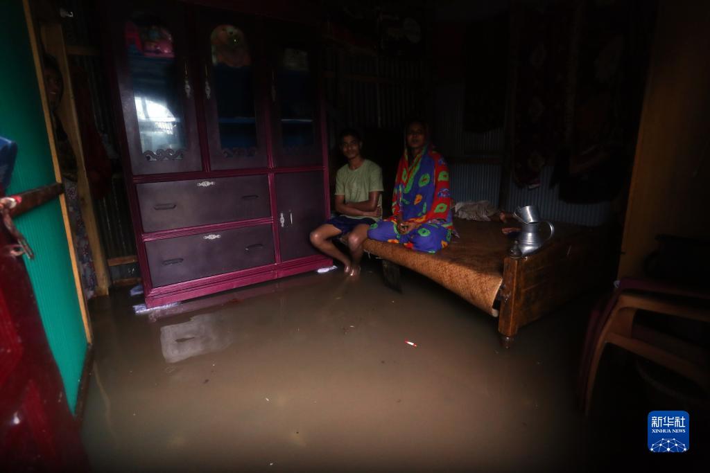 8月8日,在孟加拉國吉大港,居民坐在被洪水侵襲的家中。