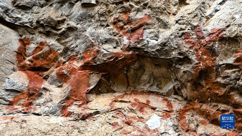 這是廣西崇左市寧明縣的花山岩畫,畫面表現的是某種慶祝儀式(8月8日攝)。