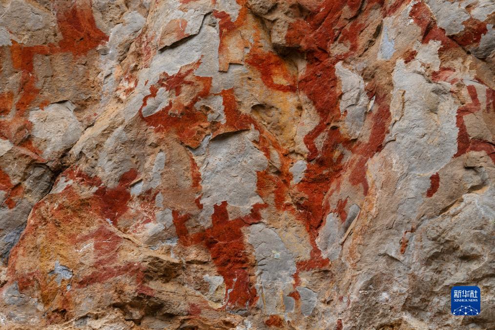 這是岩畫局部,部分岩畫已經缺失(8月8日攝)。