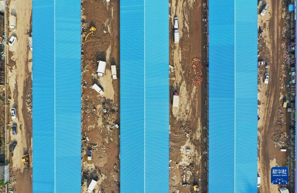 這是洪水退去後的涿州新發地大石橋農副産品批發市場(8月9日攝,無人機照片)。