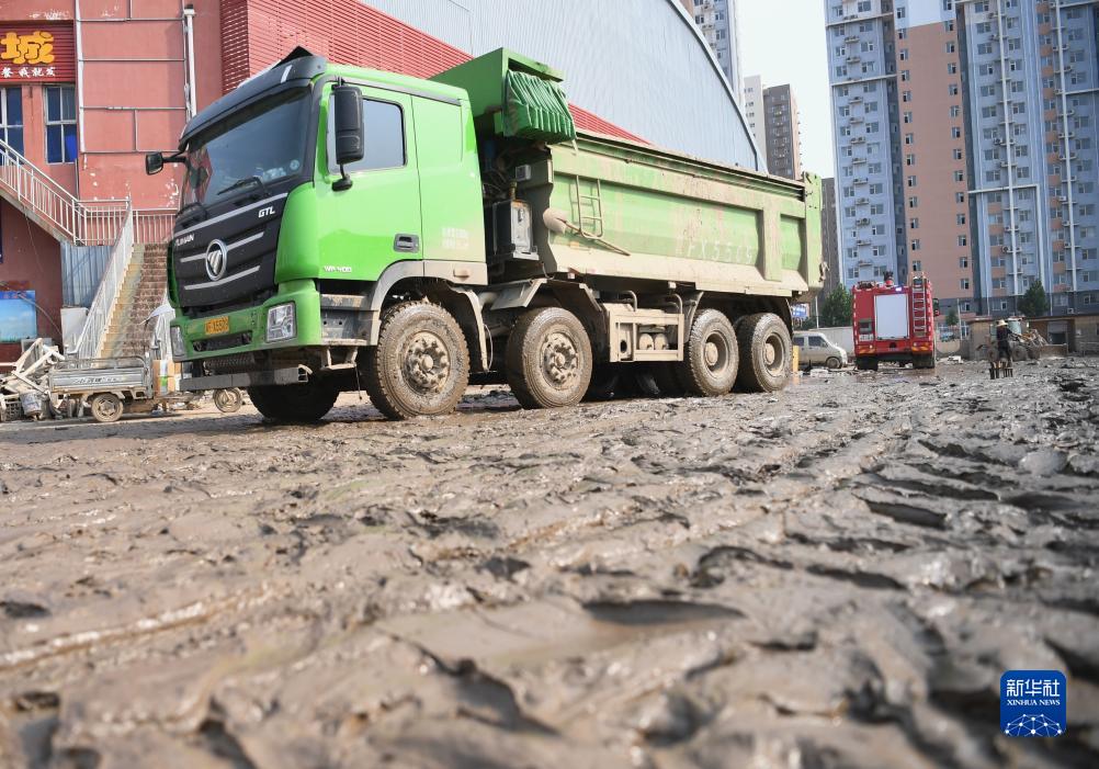 8月9日,卡車在涿州新發地大石橋農副産品批發市場清運垃圾和淤泥。