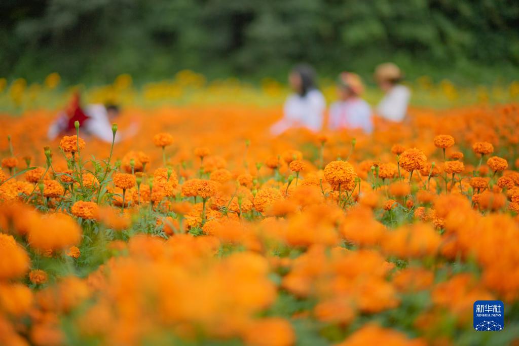 8月9日,游人在雲南省文山壯族苗族自治州文山市平壩鎮賞花拍照。