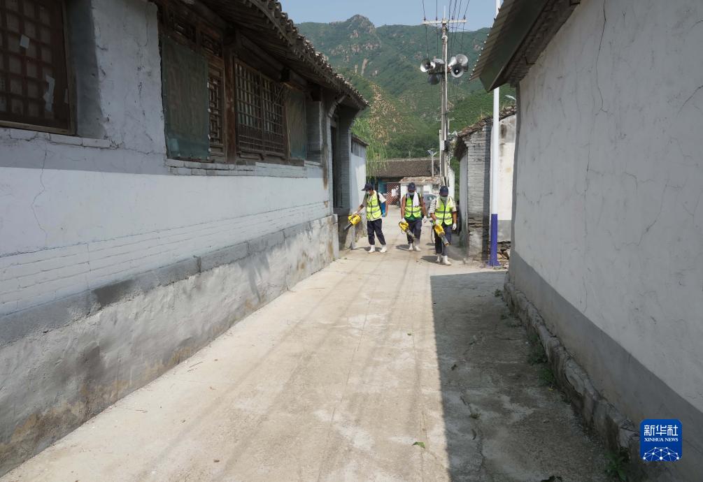8月9日,工作人員在淶水縣九龍鎮南莊村開展防疫消殺作業。