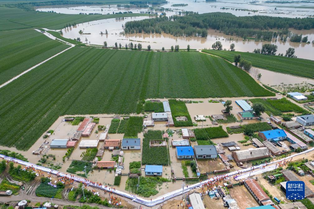 陸軍第78集團軍某旅官兵在構築堤壩(8月8日攝,無人機照片)。