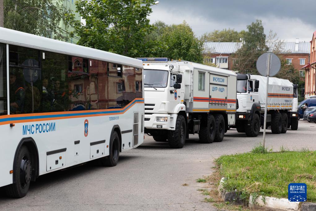 8月9日,在俄羅斯莫斯科州,救援車輛抵達事發地點附近。新華社記者 白雪騏 攝
