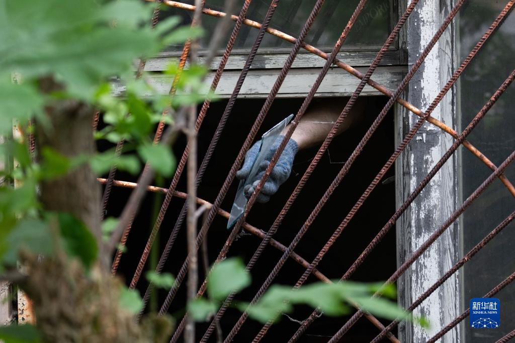 8月9日,在俄羅斯莫斯科州,工作人員清理爆炸現場的破損玻璃。新華社記者 白雪騏 攝